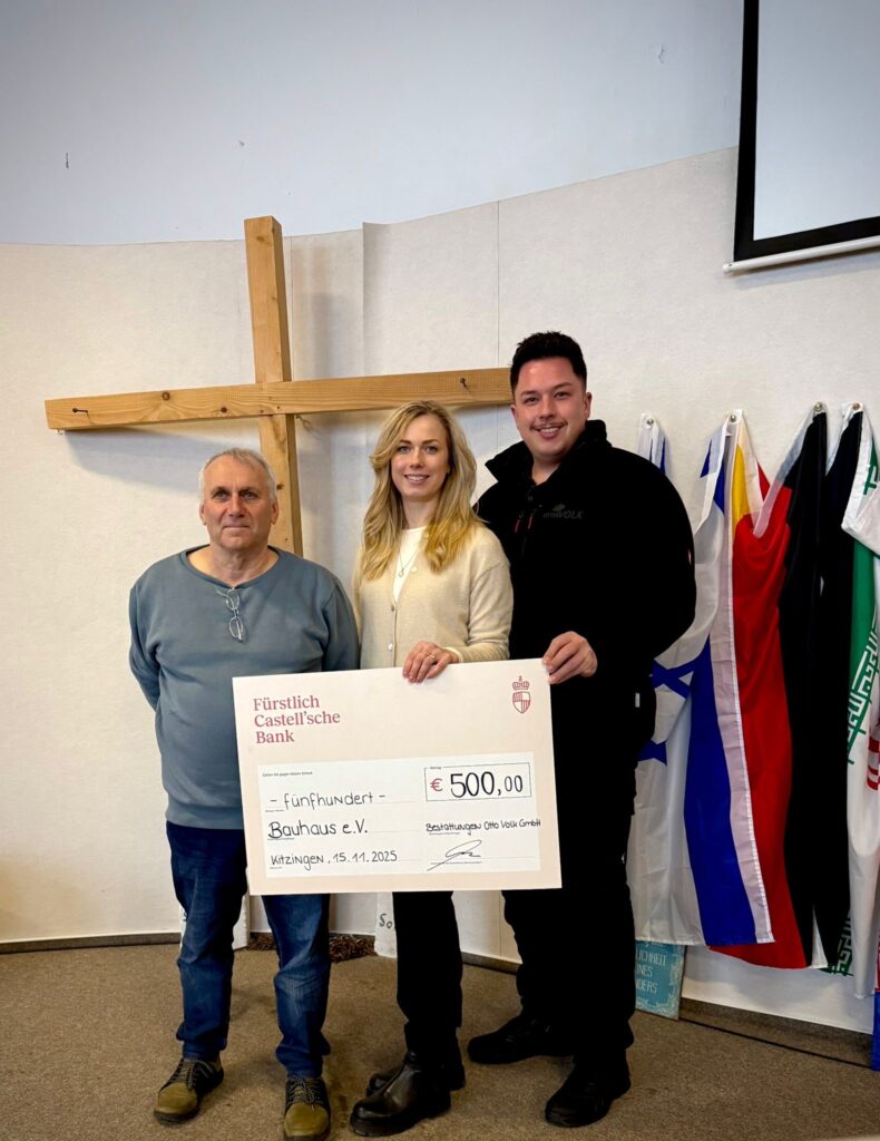 Manche Dinge sind mehr als eine Geste – sie sind ein Zeichen von Verbundenheit. Auch in diesem Jahr durften wir als Bestatttungen Otto Volk GmbH eine Spende in Höhe von 500 € an den Bauhaus e.V. in Kitzingen übergeben. Bereits im letzten Jahr konnten wir diese wichtige Arbeit unterstützen – und es fühlt sich gut an, dies erneut tun zu dürfen.
